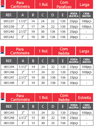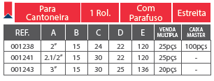 - Dimensões disponíveis: de 1.1/2" a 3" (variação conforme modelo)